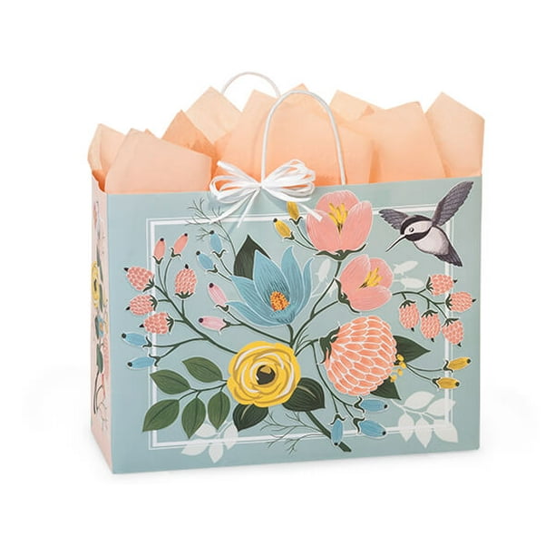 200 Pack Hummingbird Floral Paper Shopping Bags Vogue 16x6x12 5 For Party Holiday Events Made In Usa Walmart Com